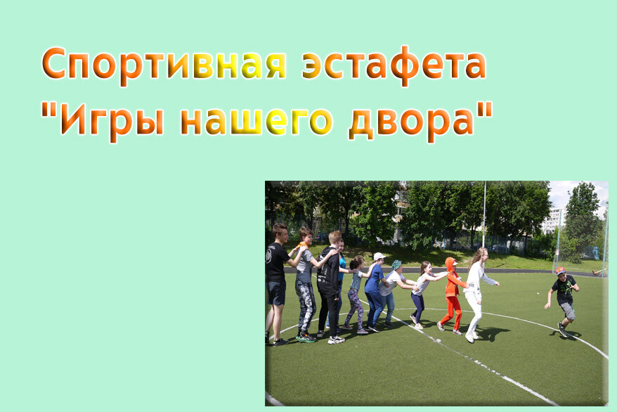 Подвижные игры, эстафеты средство и метод физического воспитания. Участвуя в эстафетах, ребята самостоятельно или группами борются за честь своей команды, оказывая поддержку и помощь товарищам, не вступая в соприкосновение с соперником. Эстафеты развивают ловкость, быстроту и скорость реакции, координацию движений, изобретательность. Они способствуют повышению двигательной сноровки, незаменимой в быту, в труде, в спорте. Эстафеты учат соблюдению правил, дисциплине, управлению своими эмоциями, совершенствуют волевые качества. 2 июня семейный центр «Восточное Дегунино» приглашает ребят от 10 лет принять участие в спортивной эстафете «Игры нашего двора». Подробности можно узнать по телефону: 8-499-767-58-87 Начало мероприятия в 14.30. Мероприятие пройдет по адресу: г. Москва, Ул. Дубнинская, д. 41, спортивный стадион школы № 183, Школьный двор.