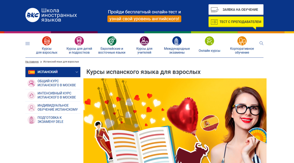1. Курсы испанского языка для взрослых от BKC (сайт школы)