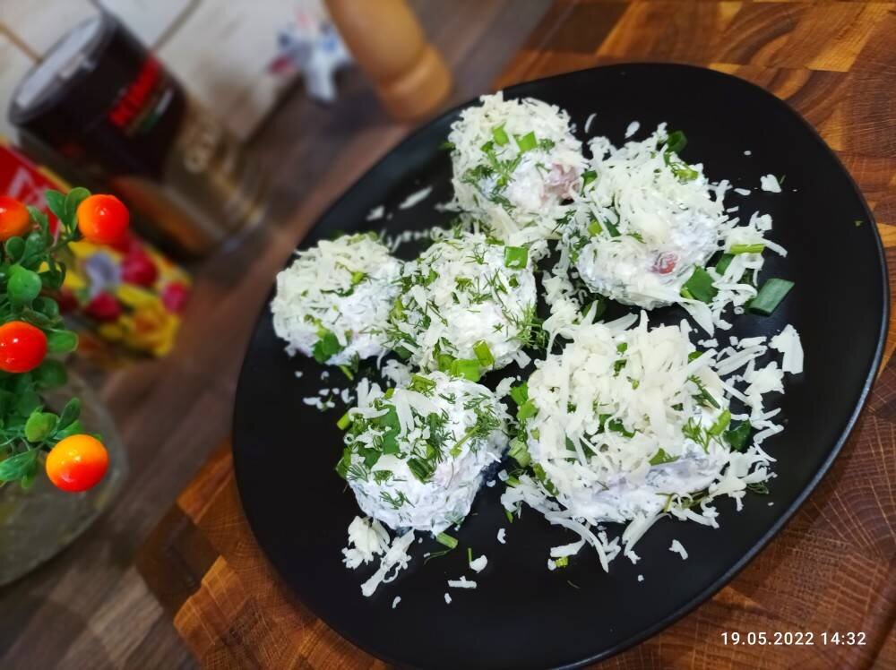 #закуски #перекус #вкуснота #пп #вкуснятина Ингредиенты: творог мягкий (у меня пастообразный), горбуша/сельдь слабосолёная, зелень (петрушка, укроп, лук зелёный), сыр (у меня сулугуни), сметана (15% жир), смесь свежемолотого перца Способ приготовления: В миске соединить творог, филе слабосолёной горбуши/сельди (нарезать кубиками), зелень (мелко нарезать), сыр (натереть на средней тёрке. Поперчить, добавить сметану, перемешать. Зелени и сыра оставить немножко для посыпки. Сформировать шарики размером приблизительно с яйцо, выложить на тарелку, сверху посыпать зеленью и сыром. Готово! Приятного аппетита 😋.