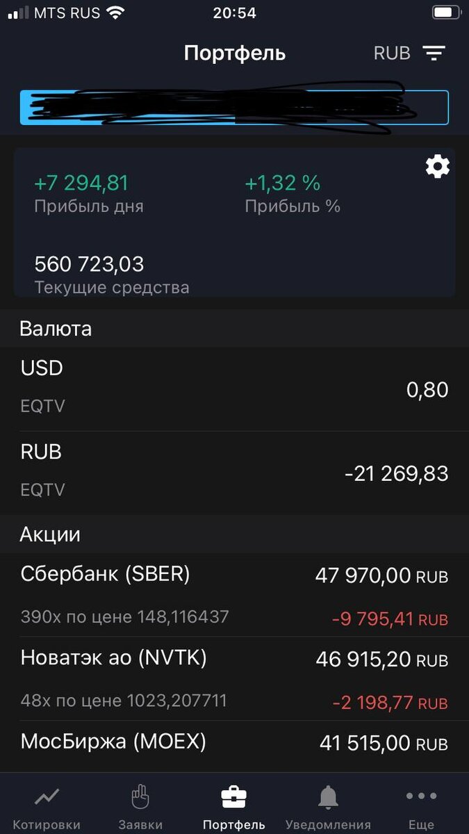 Сегодня чуть подрезал мелочевки всякой типа СПб биржи. Основные компании не трогаю. Пусть растут . Завтра конечно пятница - сливатница, но это все таки инвест портфель со спекулятивной составляющей , а не чисто спекулятивный . Поэтому пусть растёт . Мелочевки конечно много у меня, пока брать ее не буду . Объясняю. Мелочевка - это компании , которые не входят в мой Инвестиционный Рейтинг , но которые иногда покупаю со спекулятивной целью. Например НМТП, СПб биржа , Абрау Дюрсо и так далее. Соответственно, и беру их на небольшую сумму . А основу - Роснефть , Сбербанк , Газпром - беру на существенную сумму . Так вот после обвала всякая мелочевка никак восстановится не может, и ее накопилось много. Конечно , я ее выведу в плюс . Куда она денется . Просто места занимает много. Поэтому пока сконцентрирован на основе . Из недооценённых сейчас - Мосбиржа . Такие движения на рынке , такие обороты , а акции Мосбиржи пока не избалованы вниманием . Ну, были бы избалованы - у меня бы их не было .