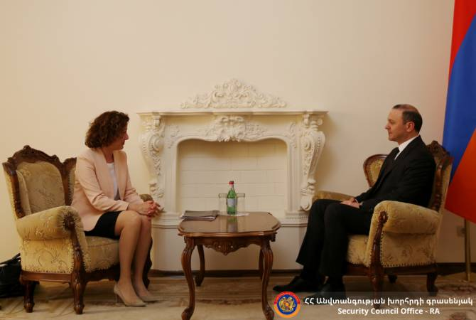 Секретарь Совета безопасности Армении Армен Григорян 26 мая встретился с заместителем министра иностранных дел Республики Болгария Иреной Димитровой. Как сообщили Арменпресс в пресс-службе СБ Армении, собеседники высоко оценили развитие армяно-болгарских двусторонних дружественных и братских отношений. Обсудив широкий круг вопросов, касающихся армяно-болгарских отношений, стороны подчеркнули перспективы продвижения двусторонних отношений и развития взаимовыгодного сотрудничества в различных сферах. Ирена Димитрова приветствовала усилия и шаги Армении по формированию атмосферы региональной безопасности. В ходе встречи собеседники также обсудили риски ложной информации как серьезного вызова сегодняшнего дня, в рамках которого коснулись дальнейшего двустороннего сотрудничества.