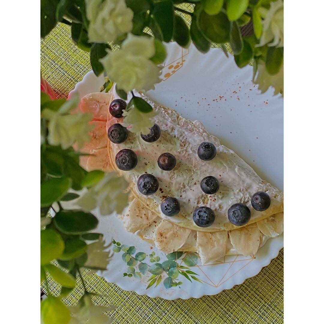 Один из наипростейших рецептов для завтрака, чтобы порадовать себя любимую :) Ингредиенты: Для овсяноблина:, яйца, овсяных хлопьев, воды, Для начинки:, мягкий творог, банан, голубика, корица Способ приготовления: В миску разбиваем яйца, добавляем овсяные хлопья и воду. Тщательно перемешиваем и даём настояться смеси примерно 3 минуты. Затем выкладываем на предварительно разогретую а/п сковороду, формируем блинчик. Обжариваем с двух сторон. После перекладываем блин на тарелку, смазываем мягким творогом, выкладываем тот фрукт, который Вам нравится. У меня это банан. Закрываем блинчик, так же смазываем, выкладываем любые ягоды и посыпаем корицей. Приятного аппетита!