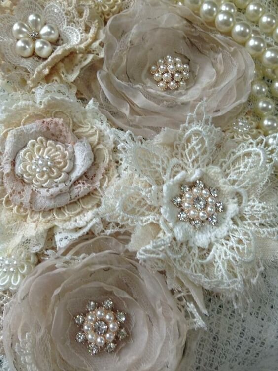 Рада приветствовать всех, заглянувших на мой канал! Сегодня поговорим о таком чудесном дополнении любого наряда, как искусственные цветы. Конечно, речь не идёт о высокохудожественных цветах из натурального шелка, изготовление которых требует огромного мастерства и немалых денежных затрат. Я расскажу вам, как буквально из совершенно ненужных лент и обрезков кружев создать небольшой шедевр и придать своему образу лёгкую романтичность. Нам не потребуются бульки для придания формы лепесткам, достаточно будет простой свечки. Посмотрите, что может получиться в результате: Как это делается? Очень просто. Потребуются широкие ленты из искусственного атласа (или любой искусственный материал), обрезки кружев и разнообразный бисер, бусинки и стразы. Для изготовления лепестков нужен именно синтетический материал, который может плавиться от большой температуры. Можно выкроить лепестки по трафарету, а можно вообще пойти по самому простому пути и вырезать круги разного диаметра. А затем очень осторож