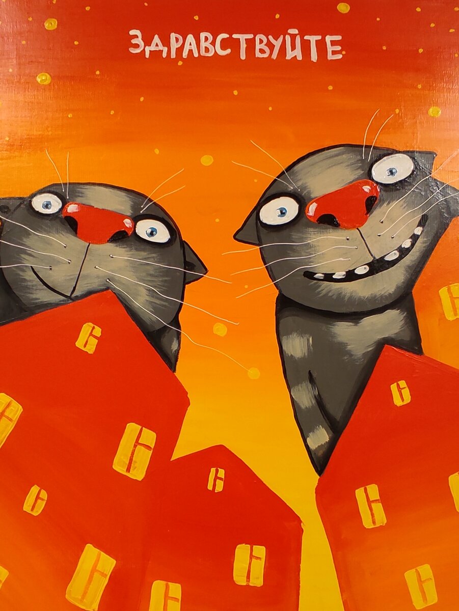 #166 С творчеством Васи Ложкина я познакомилась совершенно случайно: была на серьезной выставке в музее современной истории России, а в других залах демонстрировалась выставка картин названного человека. Что-то привлекло мое внимание, и я попутно посетила эту экспозицию. Василий Ложкин - современный человек. Живет в Подмосковье. Как он сам говорит:"Очень люблю рисовать. Рисую в основном жывотных — котов, зайцев и человекообразных обезьян... рисовать я не умею)." Орфография автора сохранена. Его мало интересует окружающая действительность. Он изображает сказочный придуманный мир. Порой это мир психозов и всевозможных пограничных состояний, ему самому порой бывает страшновато, но всё же это сказка с хорошим концом. "Вообще, в последнее время я стараюсь делать больше чего-то позитивного, чего-то, что вызывало бы положительные эмоции" - слова В. Ложкина. У Василия Ложкина есть свой сайт и странички в разных сетях. В целом я решила, что у него довольно-таки позитивные картинки и что