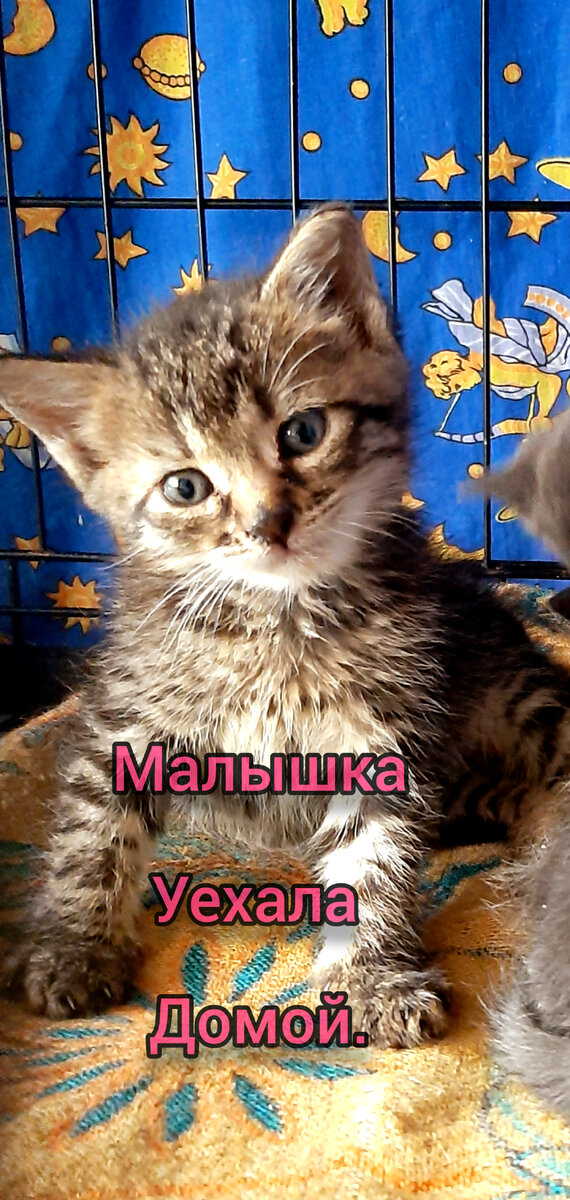 Один котенок, тигровая девочка🐱, отправилась сегодня домой🏠. Будет жить недалеко от нас Спасибо ❤️ доброй семье Оксаны за выбор малышки. На Передержке остался дымчатый братик (девочку дымчатую заберут после 23 числа) и мы надеемся, что и он совсем скоро станет домашним.