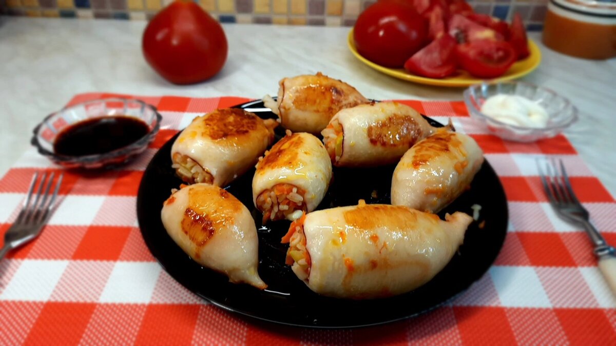 Всем привет! С вами Мила. Рада приветствовать вас на своём канале. Сегодня мы будем готовить фаршированные рисом и овощами кальмары. Рецептов этого блюда много, но эта начинка не только самая простая и полезная, а ещё и очень вкусная. 📌Фаршированные кальмары - это замечательная закуска к праздничному столу или же полноценное второе блюдо на обед или на романтический ужин. В кальмарах много белка и минералов, низкокалорийный кальмар хорошо подойдёт тем, кто следит за своей фигурой и здоровьем. Отвариваем рис до готовности. В кастрюлю с кипящей водой опускаем тушки кальмаров Сварить кальмары можно всего лишь на 30- 40 секунд. За это время кальмар сварится и почти не потеряет в размере. Если кальмары переварить, мясо будет жёстким , безвкусным, как бы резиновым. Вытаскиваем тушки и помещаем их на несколько минут в холодную воду, потом очищаем от плёнок и хребтов Хвостики кальмаров нарезаем мелкими кубиками. Целые тушки оставляем для фарширования. Готовый рис промываем холодной в