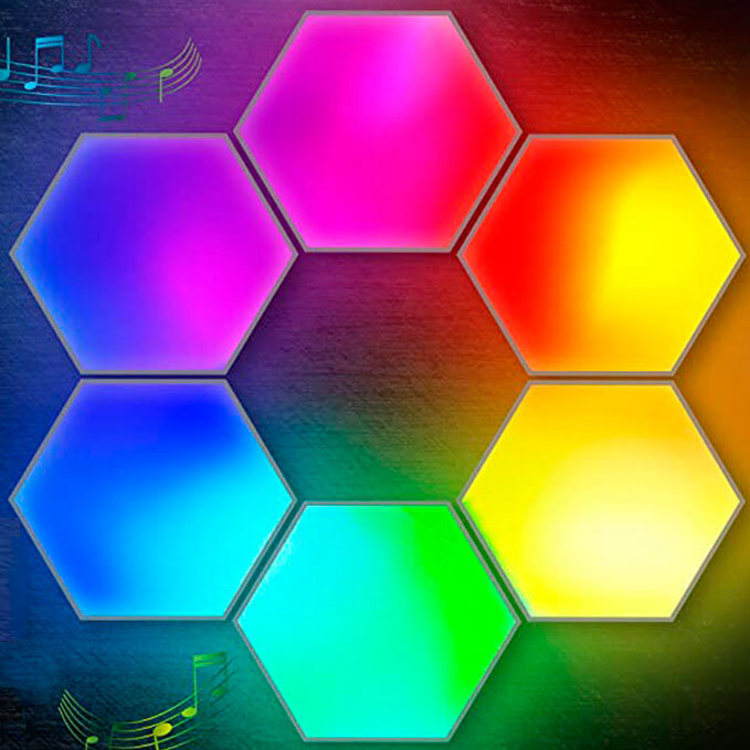 Еще один достойный экземпляр фоновой подсветки - модульный настенный светильник Сота RGB (6 штук). Умная начинка светильника позволяет каждому светильнику не просто светить любым цветом, но и реагировать на музыку и создавать креативные анимации в зависимости от расположения ячеек, при этом чем больше у вас используется модульных светильников тем интереснее получится эффект.