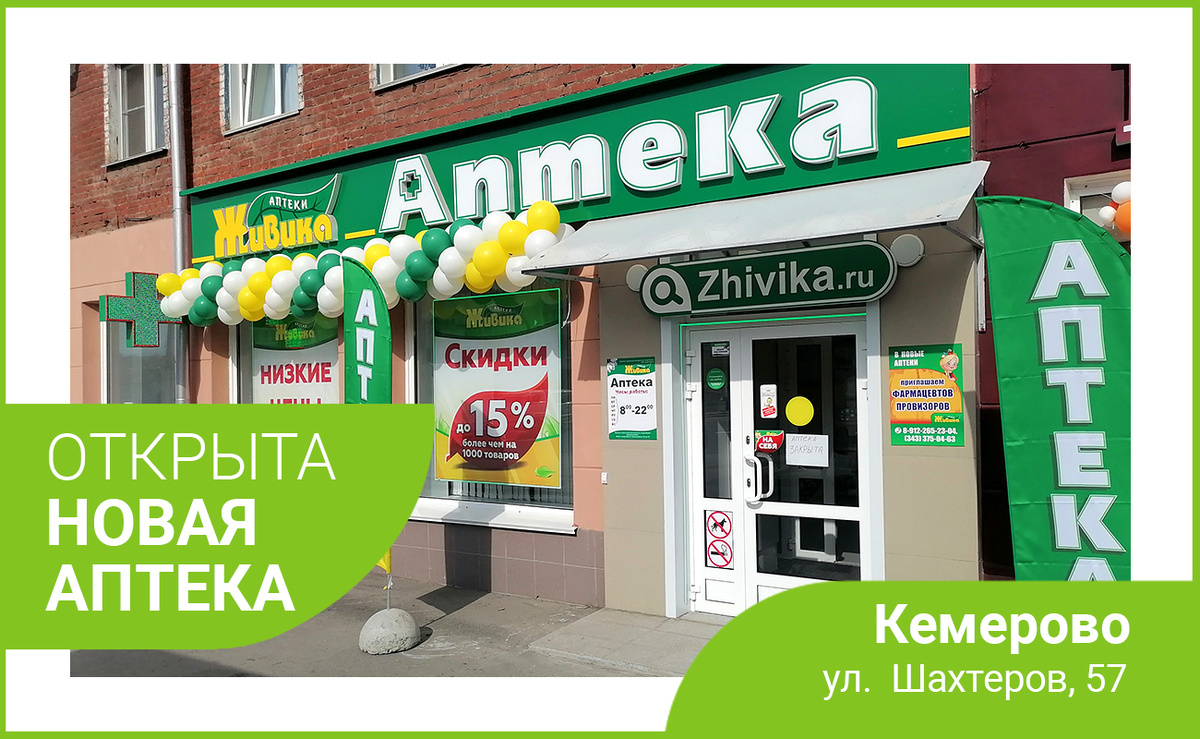 В Кемерове на пр. Шахтеров, 57 открылась новая аптека. Аптека работает без выходных с 8.00 до 22.00.