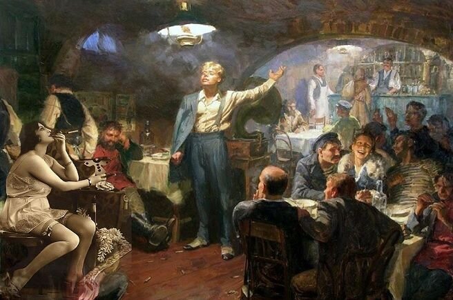 Переулком в знакомый кабак. Шум и гам в этом логове жутком,