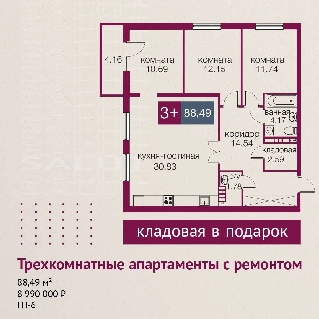 Новостройка в центре Тюмени с ремонтом по цене 2021 года