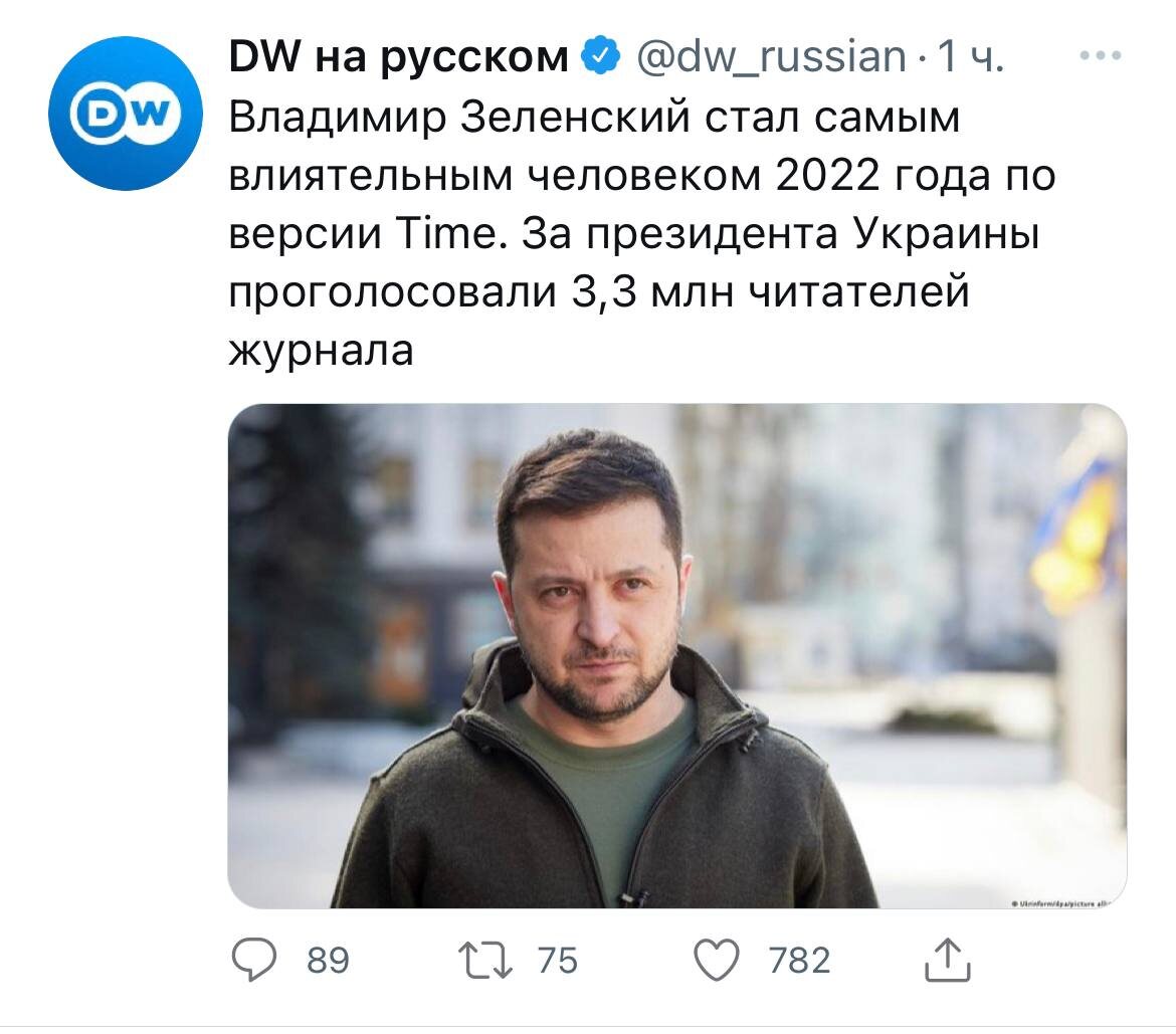 Кстати, на этот раз согласны. Зеленьский в этом году заслужил титул самого влиятельного человека. Он повлиял на размер территории Украины. И, кстати, России тоже. Повлиял на цены на газ и нефть. На цены на сельхозпродукцию и удобрения. Повлиял на траектории авиамаршрутов в Евразии. Повлиял на темпы роста инфляции в странах по всему миру. Сильно повлиял на весь следующий отопительный сезон в Еврозоне. Благодаря ему Украина также выиграла Евровидение. Вопросов к Time нет. Всё по делу.