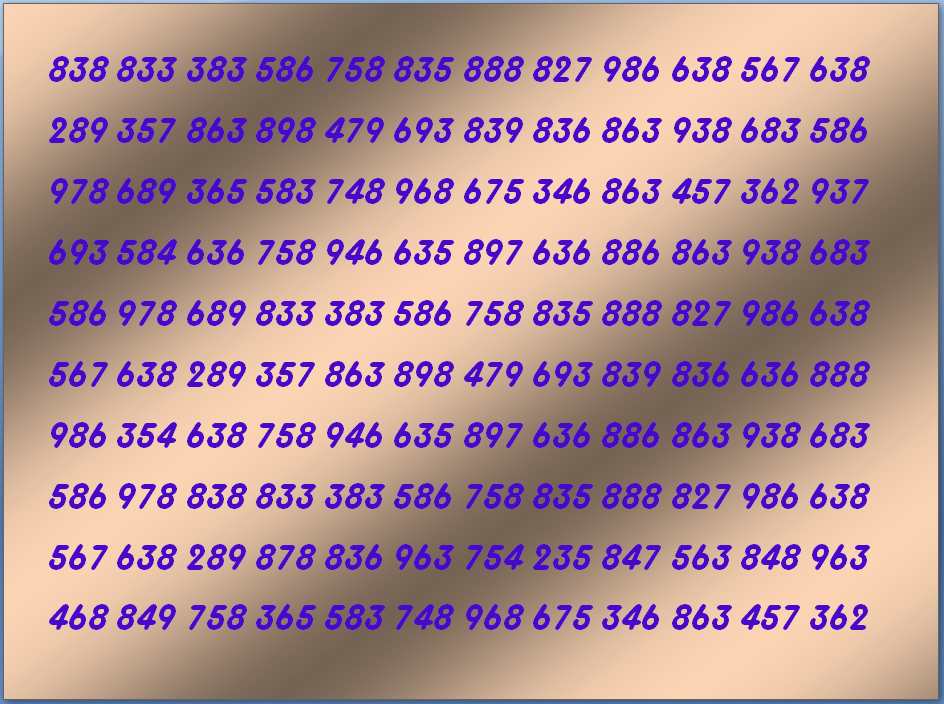 Приветствую вас на канале. Сегодня предлагаю тест для проверки внимательности. Среди этих чисел есть три числа 836. Найдите их. Не забывайте подписаться на канал и поставить лайк. А это ответы для проверки...