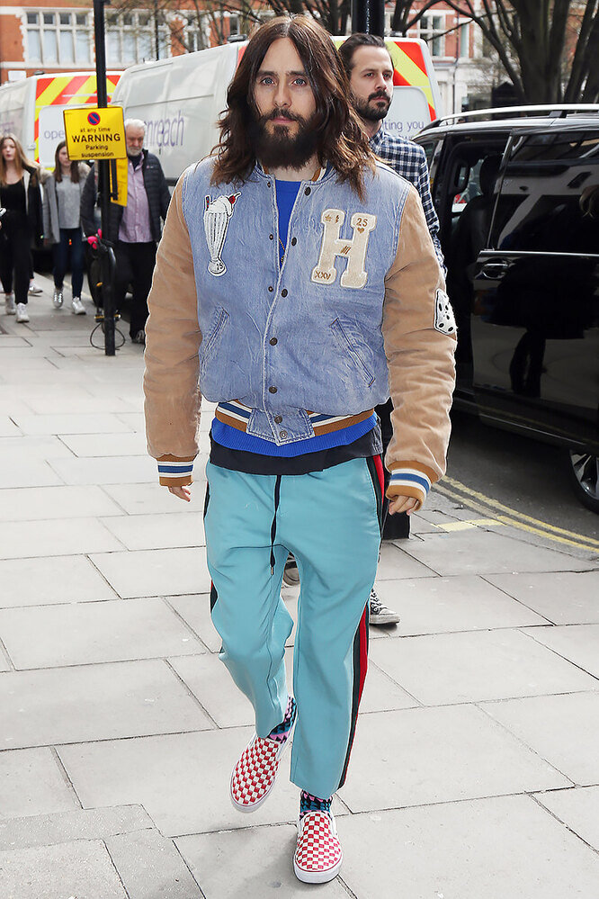 Рассказываем и показываем, из чего состоит дикий стиль Джареда Лето. Повторять не призываем: чтобы так одеваться, нужно в первую очередь просто быть Джаредом. Слипоны Джаред очень любит простые скейтерские слипоны в шашечку. Надевает с яркими принтованными носками, которые, как правило, выглядывают из-под не менее ярких принтованных штанин. Цветные шаровары Шелковые брюки будто из пижамного комплекта Аладдина в цветок или с галстучным узором у Джареда вместо треников — наряд, чтобы выйти в в магазин за хлебом. Пончо Пончо и кейпы — традиционные атрибуты сценического костюма Джареда. Редкий концерт Thirty Seconds to Mars проходит без них. Лето расхаживает в них, как король в мантии, и очень эффектно скачет, размахивая полами будто крыльями. Комичные головные уборы Шапка-носок миллениальского розового цвета, бандана, кепка со смешной нашивкой, тюрбан или нелепая повязка — в том, что касается головных уборов, Джаред — за любой кипиш. Понравилась статья? Подписывайтесь на Правила жизни, чт