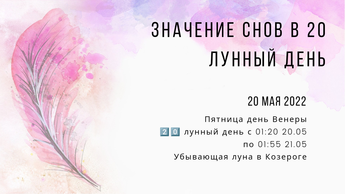 20 мая 2022 Пятница день Венеры 2️⃣0️⃣ лунный день с 01:20 20.05 по 01:55 21.05 Убывающая луна в Козероге Сон может быстро исполниться. В эти лунные сутки можно заказать сон по своему желанию. Например, отправиться во сне туда, где хочется побывать. Можно попробовать присниться кому-нибудь, в этот день есть шанс войти в чужой сон. Возможно решение проблем, подсказки, инсайты, выход в тонкие миры. Сны этой ночи дадут много ответов, даже если ты не практикуешь осознанные сновидения. Анализируй увиденное, чтобы найти разгадку на мучающие вопросы. Часто сны 20 лунных суток напоминают нам о людях, которых пора навестить. Существует примета, что если в этот день утром плохая погода, то сон может сбыться в эти же сутки. #сон #сон в руку #вещие сны #толкование снов #сны которые сбываются #когда сбываются сны