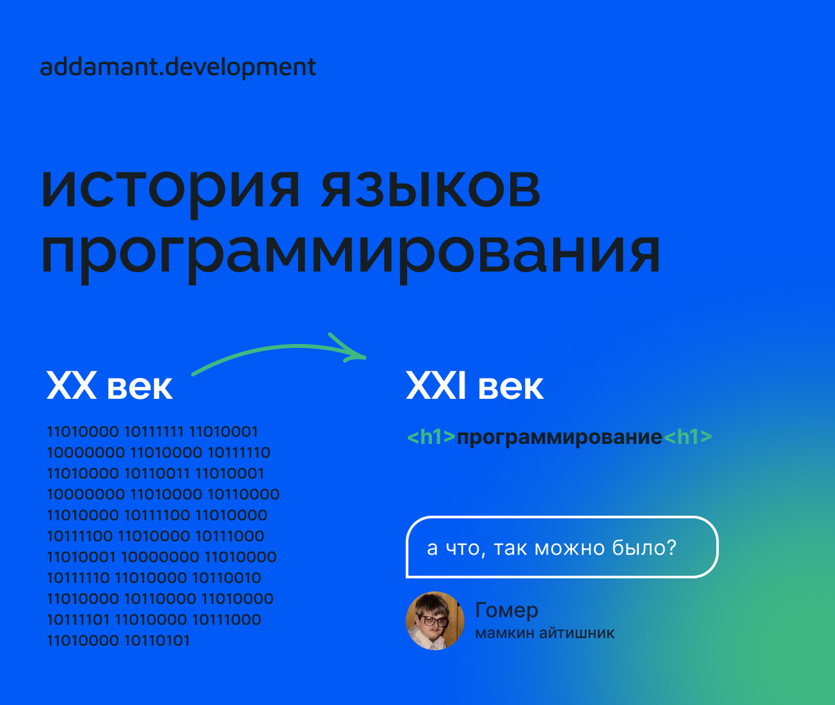 Самые первые программы для машин программисты писали в машинных кодах (до середины XX в). В машинном коде программа выглядела как гигантская череда единиц и нулей — без возможности дебага, тестирования и ускорения этого процесса. К тому же самым большим минусом машинного языка оказалась его машинозависимость — каждому устройству необходимо было составлять собственную программу.