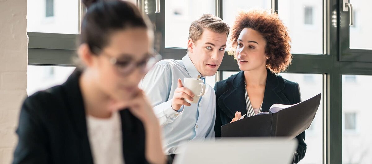 Поговаривают, что человек проводит на работе половину жизни, наверное поэтому ругательства встречаются и тут. В рабочей среде, однако, часто в лицо никто не использует бранных слов и большинство негатива выдается за спиной. Сплетника называют в немецком языке «das Lästermaul» или «der Mitarbeiter mit schrecklichem Mundwerk».
