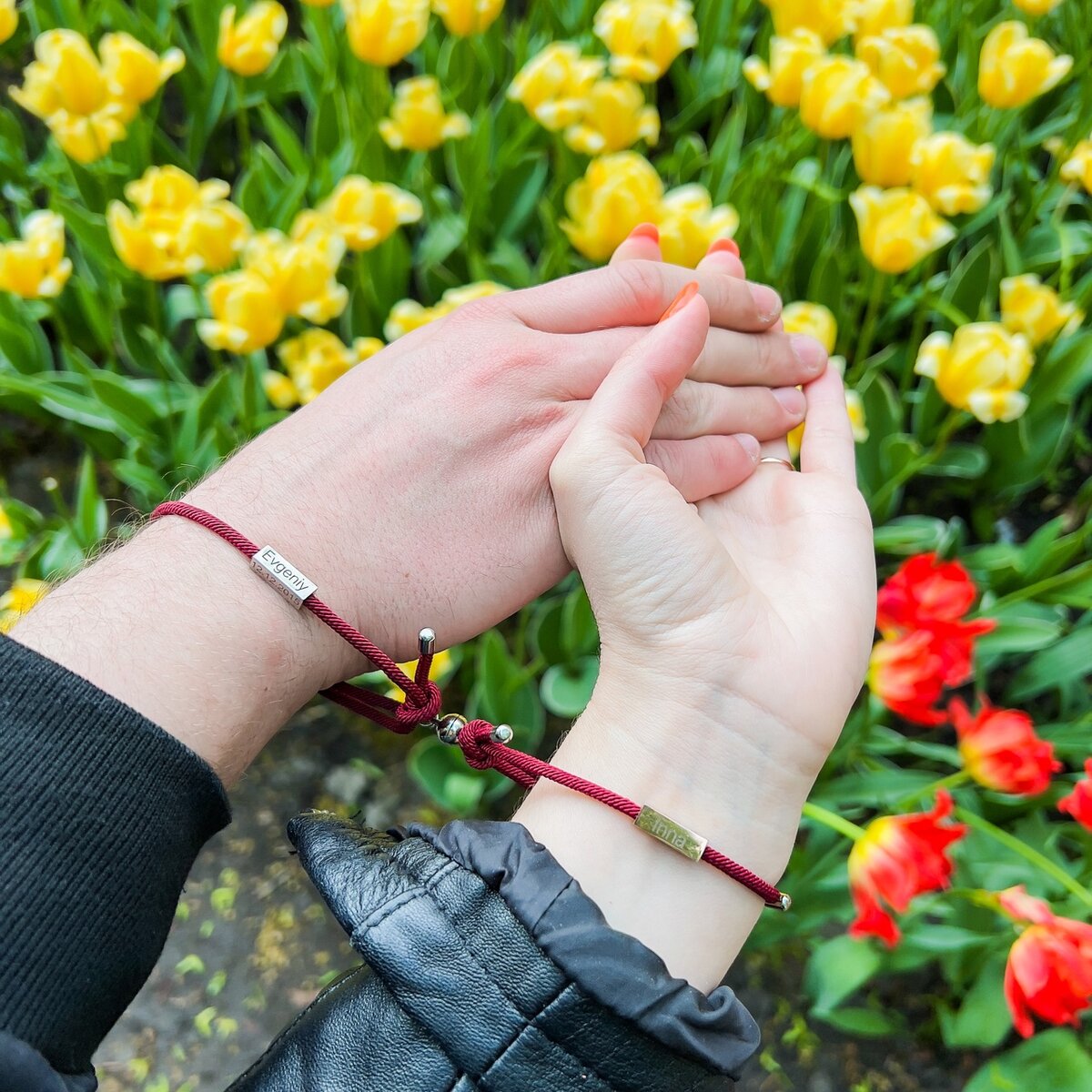 Браслеты для влюблённых с гравировкой в виде имён и важной даты (знакомства, отношений, свадьбы). Так, вы и ваша половинка ни за что не забудете поздравить друг друга. Да и вообще это безумно мило. На шнурках закреплены магниты, и браслеты примагничиваются друг к другу. Заказывала на AliExpress в магазине Qi Qi Wu Official Store. По ссылке в наличии несколько расцветок. Доставка длилась 2 месяца, так как были проблемы с доставкой из Китая, сейчас уже всё идёт быстрее. Трек номер отслеживался. Внимание: этот пост содержит рекламные ссылки (если их можно таковыми назвать). Вещь куплена мной на AliExpress, все фото мои, мнение о товаре тоже моё. Прямая ссылка на товар на AliExpress: https://aliclick.shop/r/c/1rbxrd2gs955abfg Шнурки прочные, регулируются по руке. Размер универсальный. Металлические элементы из нержавеющей стали. На мужском браслете металл в цвете серебро, на женском в цвете розовое золото. Браслеты лёгкие. Материалы не вызывают аллергию. Гравировка выполнена аккуратн