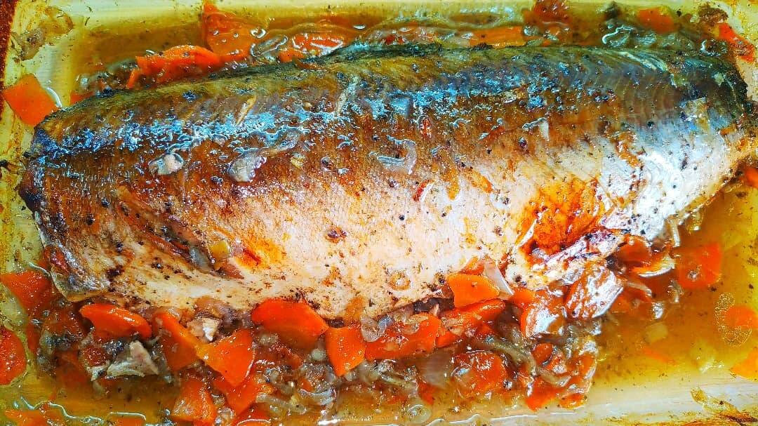 🐟🥕🧅 Ингредиенты: 🔸 Горбуша , 🔸 Репчатый лук , 🔸 Морковь , 🔸 Лимон , 🔸 Соевый соус , 🔸 Раст. масло, 🔸 Соль, 🔸 Чёрный молотый перец , 🔸 Любимые травы к рыбке (по желанию) Способ приготовления: Рыбу помыть, почистить. Вынуть внутренности. Лук и морковь почистить. Помыть. Нарезать на любимые крупные кусочки. Рыбу промазать специями, по желанию выдавить лимон. Так же можно положить в брюшко пару ломтиков. Изнутри пролить соевым соусом. Положить в середину часть овощей. Блюдо для запекания смазать маслом, выложить туда немного овощей, положить рыбу, сверху оставшиеся овощи. Сбрызнуть опять соевым соусом. Посолить и поперчить немного овощи (по вкусу и желанию). Накрыть крышкой или фольгой. Поставить в духовку 180⁰-200⁰, на ~35-45мин(смотрите на объем рыбы). За 15 мин до готовности, откройте для образования румяности. После запекания дайте немного остыть, и подавайте к столу. Приятного аппетита!!