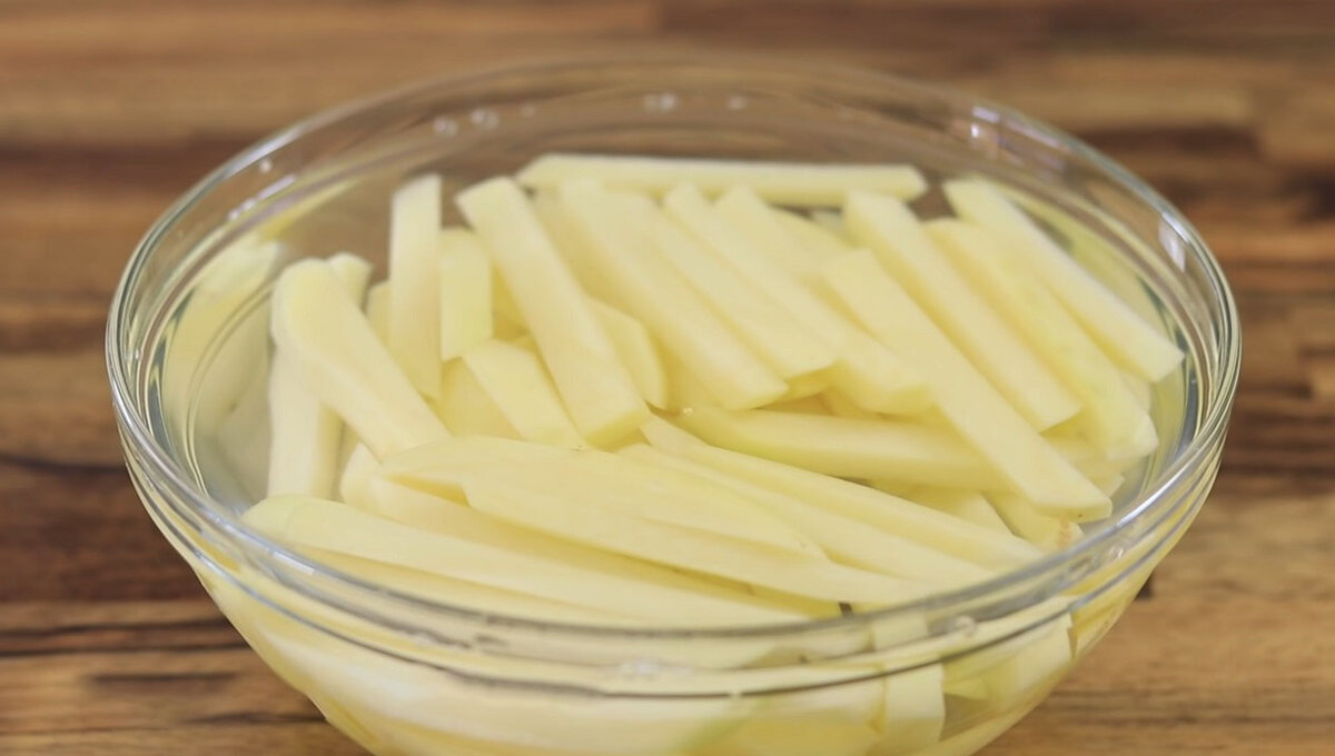Рецепт очень прост. Свежеочищенную картошку нужно нарезать на порционные ломтики (чем они мельче - тем проще вымыть крахмал из продукта) и замочить в чуть теплой воде с щепоткой соли. Через 10-15 минут вода помутнеет, а если крахмала очень много, то через полчаса она станет похожа на разбавленное молоко.