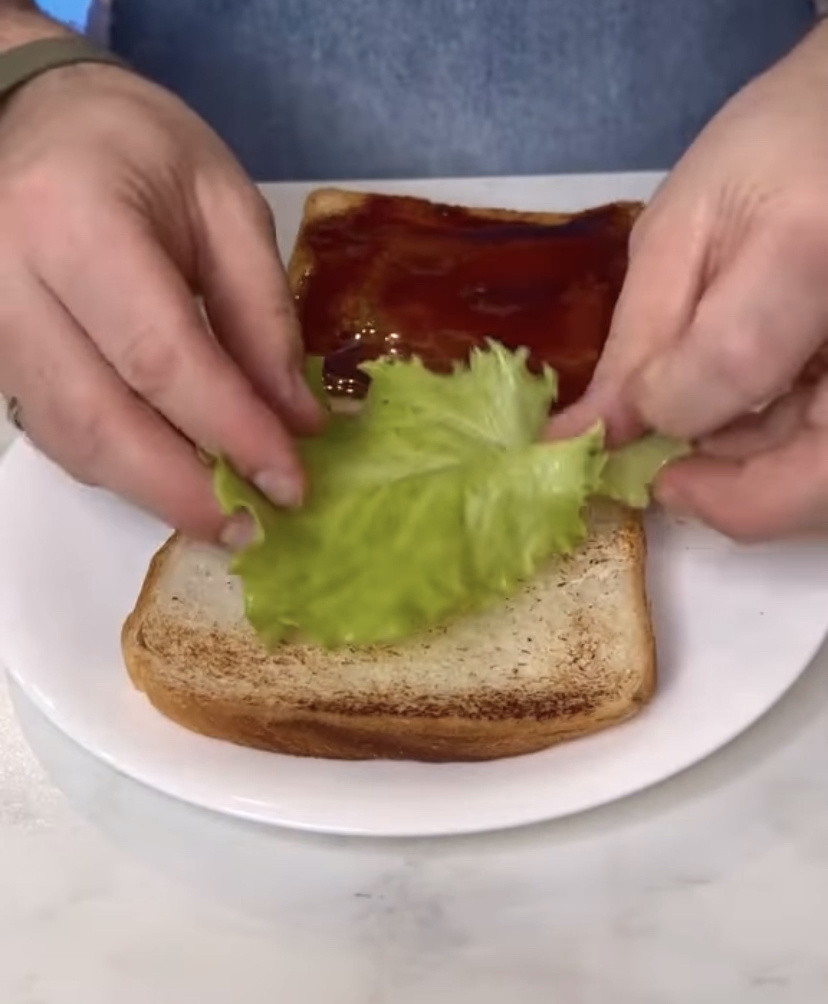 Способ приготовления: Разбиваем два яйца перемешиваем туда же добавляем мелко нарезанные шпинат, болгарский перец, помидор и зелёный лук. Жарим отдельно стейк из индейки можно из курицы на вам вкус и выбор. Так же обжариваем тостерный хлеб. Несколько листочков салатного листа, морковка по корейски и корейский соус барбекю. Кладём обжаренный с дух сторон хлеб сверху кладём два листка салата сверху омлет и накрываем другим смазанным корейским соусом хлеб. После того как накрыли сверху ещё раз смазываем хлеб соусом После того как обмазали кладём обжаренный стейк и морковь по корейски и закрываем это всё смазанным хлебом Приятного аппетита) Спасибо за уделённое время не забудьте подписаться чтобы не пропускать интересные и вкусные рецепты ) И не забудьте отставить комментарии для улучшения дальнейших публикаций .