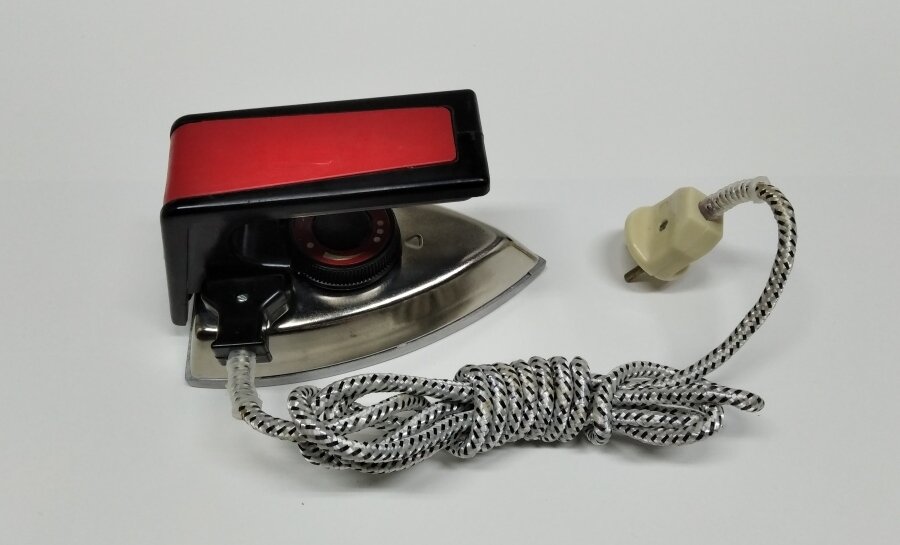 Электроутюг с терморегулятором малогабаритный. Утюг состоит из корпуса, съемной ручки и съемного шнура, в разобранном виде детали утюга размещаются в футляре со скобой-фиксатором. Утюг изготовлен в Российской Федерации в городе Карачев Брянской области на заводе "Электродеталь" в 1996 году. Страница экспоната в МУЗЕЕ АНТИКВАРНЫХ ПРЕДМЕТОВ РФ