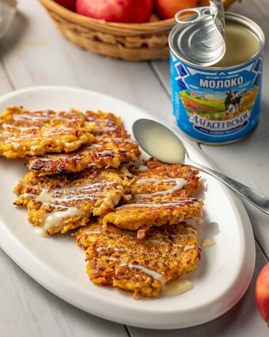 Среди бесчисленного множества блюд драники занимают особое место ввиду широкой известности и простоты приготовления. Мы хотим вам предложить необычный рецепт сладких драников. Идеальное начало дня! Драники из яблок Ингредиенты: Способ приготовления: 1. Яблоки натереть на терке. Отжать руками от сока (если яблоки слишком сочные). 2. Добавить яичный желток, сахар, муку и быстро перемешать. 3. На сковороде разогреть растительное масло. Отпекать по ложке смеси с двух сторон до хрустящей корочки. 4. Выложить на тарелку, полить сгущенкой и подавать к столу. Приятного аппетита! #алексеевское #сгущенное молоко #сладкий завтрак #драники #яблоки #сгущенка #домашний рецепт #доброе утро #десерт