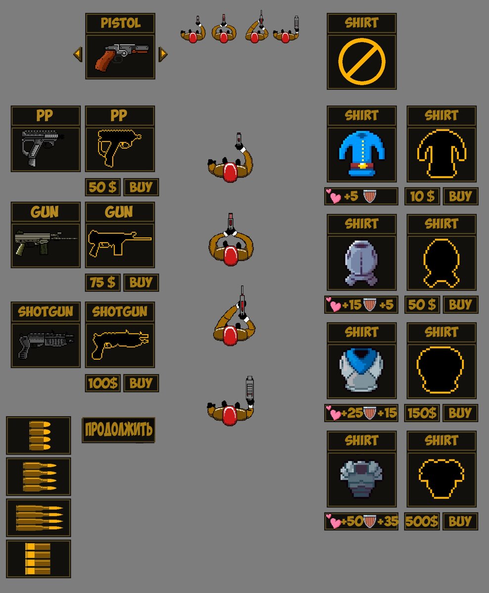 3) Добавлю 3 варианта нового оружия, так же постараюсь сделать под каждое оружие свою механику стрельбы.