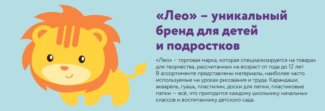 Материалы для детского творчества ТМ «Лео» созданы на основе современных стандартов и методик развития ребенка, с учетом потребностей детей разных возрастов. Для занятий в школе и детском саду, в творческих кружках и дома — выбирайте «Лео»! Формирование базовых навыков общения, развитие художественного восприятия и эстетического вкуса — всё это начинается с детского сада и активно продолжается в начальной школе. Именно поэтому важно выбрать правильные инструменты и качественные товары, такие как предлагает торговая марка «Лео». Материалы для детского творчества разработаны с учётом современных стандартов и тенденций развития ребёнка. В ассортименте представлены три серии материалов, которые отражают потребности детей разного возраста: «Лео. Расти», «Лео.Учись» и «Лео.Играй». Поощряйте первые творческие успехи своих детей — в садике, в школе и дома. Делайте это искренне! А товары «Лео» помогут во всём остальном! https://leo-shkolasad.ru/catalog/