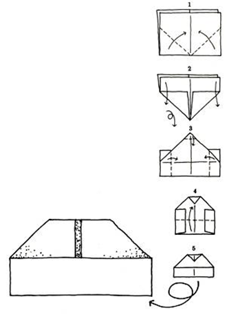 Урок: ручной труд Тема: изготовление по образцу шапочки-пилотки Цель: познакомить обучающихся с японским искусством – оригами, с техникой выполнения пилотки из газеты. Задачи: - развивать умения анализировать образец, повторяя по вопросам анализ, данный учителем, выполнять изделие по инструкции и показу; - обучать умению находить и показывать стороны листа, углы, середину, понимать и выполнять задания сложить «пополам», «с угла на угол»; - вырабатывать умения складывать бумагу по разным осям. Оборудование: газеты, образец шапки-пилотки, проектор. Ход урока I. Организационный момент Прозвенел звонок для нас. Все зашли спокойно в класс, Встали все у парт красиво, Поздоровались учтиво, Тихо сели, спинки прямо. Все легонечко вздохнем, И урок технологии начнем. Проверка готовности рабочих мест: А сейчас проверь, дружок, Ты готов начать урок? Все ль на месте? Все ль в порядке? Все ли правильно сидят? Все ль внимательно глядят? II. Основная часть 1. Беседа о свойствах бумаги, основных цветах.