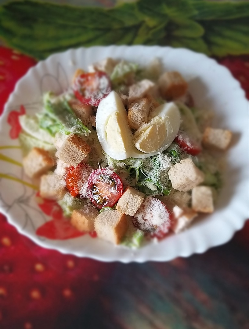 -2гр.перец чёрный Филе куриное маринуем в соевом соусе с чесноком и обжариваем. Лист салата рвём,пекинку режем большим кубиком.Следом режем курицу,так же кубиком,добавляем соус,черри,сухарики,режем яйцо и конечно пармезан.Готово!Приятного аппетита!Если вас заинтересовала статья, подписывайтесь на канал. Дальше будет интереснее.
