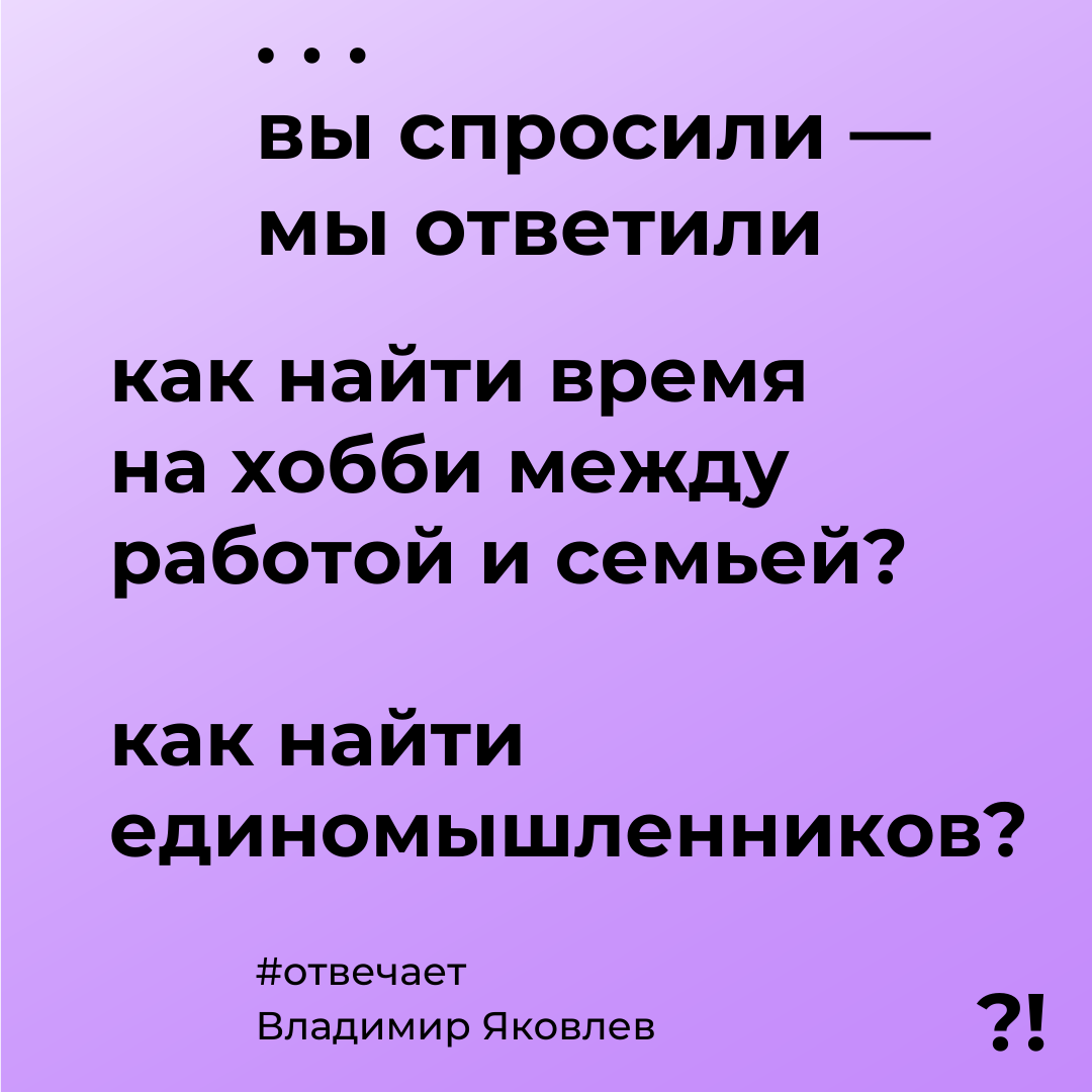 Для того, чтобы у вас появилось время на увлечения – нужно начать им заниматься. Нужно выкроить, по крайней мере, маленький кусочек: полчаса, час, ну, сколько-то, сколько вы можете – для того, чтобы начать делать то, что вам интересно. И если это действительно будет вам интересно, то вот эта история, она как семя, которое вы посадили, оно будет прорастать, оно будет понемногу развиваться и занимать все больше и больше места, выталкивая, выдавливая остальные занятия и забирать у них то время, которое, на самом деле, не так уж и было необходимо.