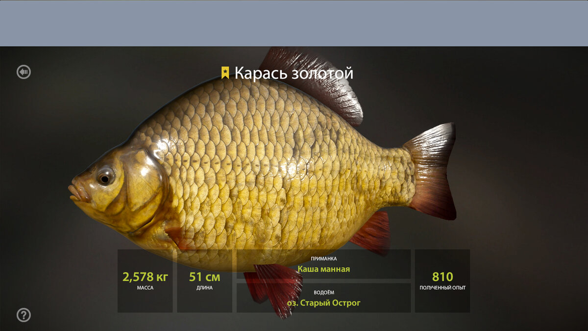 Всем привет! Любителям Русская Рыбалка 4 Хотел бы поделится с вами Трофейными карасями на О. Старый Острог, проверенно и поймано мной лично! Координаты 21-67, клипса 10, Манная каша! Удачных Трофеев и НХНЧ ! P.S. Буду стараться выкладывать известные и рабочие мне точки на момент опубликования статьи! Если интересно и было полезно - подпишись и оставляйте свои комментарии: это будет мотивировать меня больше искать для Вас интересные точки! ;)