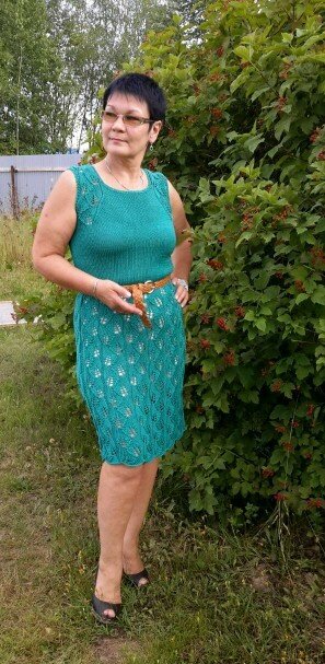 Когда я только начинала вязать, то очень хотела иметь у себя вязаное платье. Но опыта не хватало. С годами я приобрела опыт и теперь с большой любовью вяжу разные платья. Хочу представить одно из них. Чтоб связать платье нужно много времени. Но зато эффект может превзойти все ожидания. Платье связанное своими руками уникально. И как правило в вашем окружении такого нет ни у кого. Платье подчеркивает вашу индивидуальность. Схемы иногда представлены в описании сложные. Я предлагаю простую схему для этого платья. Но как эффектно она смотрится в этой модели. Пряжу использовала хлопок от фирмы "Seam" "Hawai". Пряжа очень достойная. Платье ношу уже не один сезон. Не выгорело на солнце, не линяет при стирке. Пряжа имеет лёгкий блеск и он тоже сохранился. В 50 граммах 120 метров. Вязала спицами 2,5 мм.