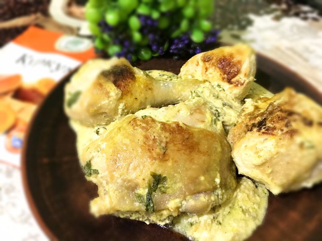 Вкусная курица в сметанном соусе , которая подаётся с любимым гарниром 🤗 Ингредиенты: тушки курицы, репчатого лука, сметаны 20%, сливок 10%, чеснока, Соль, чёрный молотый перец , куркумы, Свежая зелень - у меня кинза и петрушка Способ приготовления: Курицу нарезаем порционными кусочками, выкладываем в сковороду с разогретым растительным маслом, солим, перчим, добавляем куркуму и обжариваем на умеренно сильном огне до золотистого. Выкладываем нарезанный четверть кольцами репчатый лук- жарим 8-10 минут, периодически перемешивая. В миску смешиваем сливки, сметану, добавляем пропущенный через пресс чеснок, нарезанную свежую зелень, перемешиваем и вливаем в сковороду. Накрываем крышкой и тушим 25-30 минут. Подаём блюдо горячим с любимым гарниром.