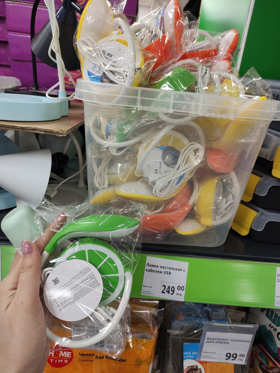 Здравствуйте, подписчики, читатели и гости канала. Сегодня снова посмотрим на полочки магазина Фикспрайс в очередной попытке найти неплохие товары, отдав за недорого. Как всегда в каждом отделе есть кое-что интересное, ассортимент не стоит на месте, как к сожалению и цены, но всё равно есть что купить. Мне понравились вот эти яркие лампы светодиодные настольные с кабелем. Выполнены они в виде ярких фруктов. Очень пригодится для любителей раскрашивать картины по номерам или алмазной мозаики. 3 режима яркости. Компактно складывается, удобно брать с собой, а если захватить и переносную батарею, то можно пользоваться везде. Стоимость 249 рублей. Рядом за такую же цену новинка- лампа антимоскитная с кабелем. Скоро как раз сезон комаров и мошек, на даче очень может пригодиться. Интересно, как она в деле. Задумка интересная, но опять же лучше иметь с собой переносной аккумулятор. И снова новинка- за те же 249рублей можно купить мини-вентилятор , который снова идёт в комплекте с кабелем. 3