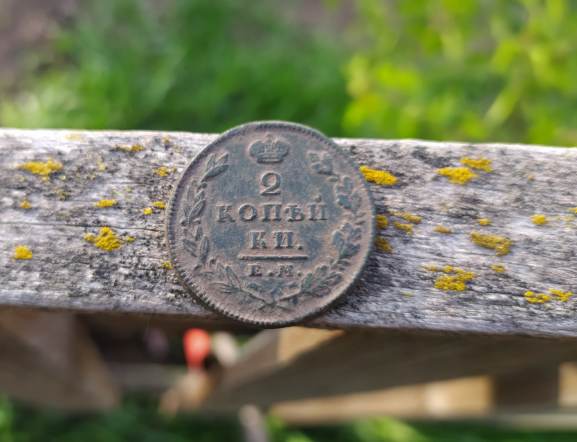 Понравилась мне вот такая монета номиналом 2 копейки: Как ни странно, но про не можно сказать, что круглая для своего типа (т.е. правильной формы). И в меру четкая. Нужно ее просто помыть, но сразу понятно, что под слоем грязи обязательно будет зелено. С одной стороны, зелень это хорошо, но с другой стороны, это хорошо только в том случае, когда ровно. Для помывки решил использовать средство под названием "Азелит". Оно безопасное. По факту, это "активное мыло". Грязь удалял только при помощи пальцев, чтобы монету не поцарапать. Мне нужно было просто убрать грязь, оставив то, что должно остаться. Целый день идет дождь, стоит повышенная пасмурность. Монетка вполне отмылась. Фотография, к сожалению, не совсем точно передала ее реальный цвет. Получилось ближе к черному, но с небольшим оттенком зеленого. Монетка ничего особого не стоит. В каталоге указана цена на уровне 180 рублей, что означает, что относится она к очень распространенным. Такой факт Двухкопеечников периода 1810-183