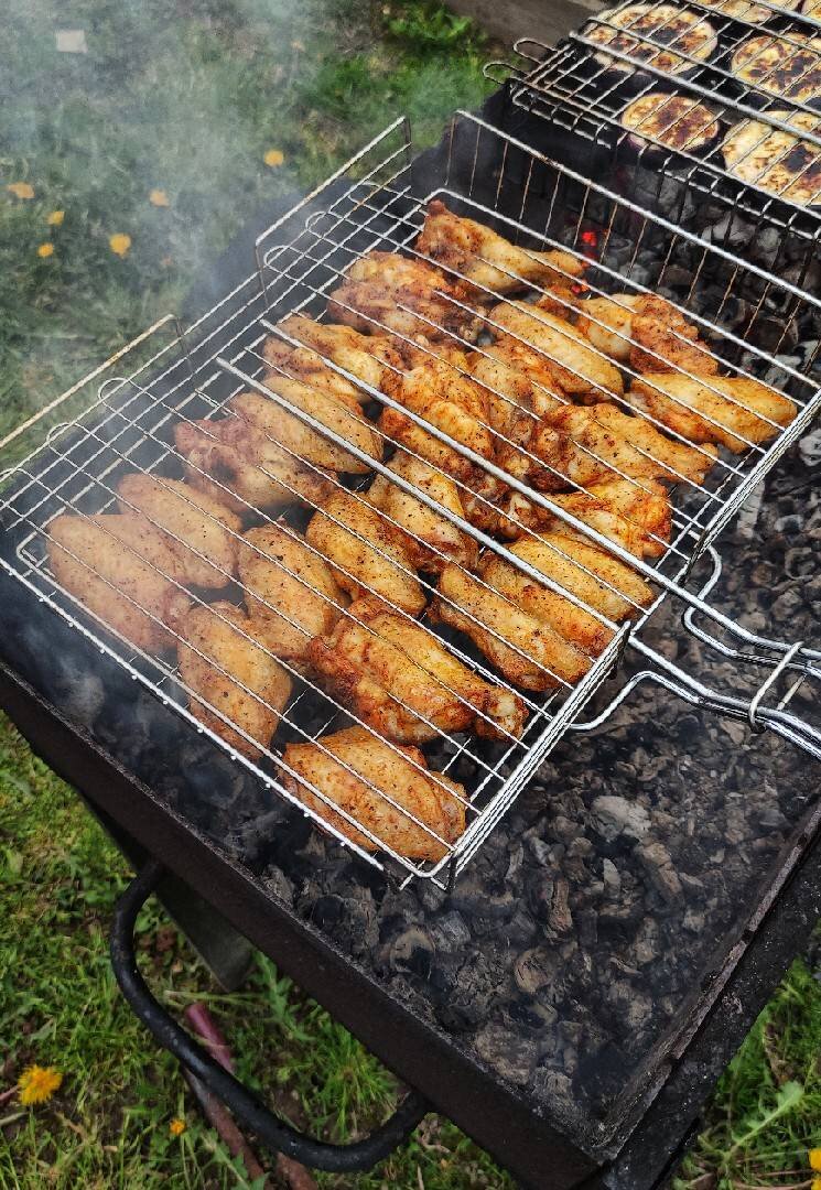 Крылья в вишнёвой глазури, все достаточно просто и очень вкусно Ингредиенты: Куриные крылышки, Перец черный молотый , Соль , Чеснок сушеный , Паприка копчёная , Вишневый джем , Соевый соус , Перец Чили по желанию Способ приготовления: Крылья разделить на фаланги и замариновать с черным перцем, солью, сушеным чесноком и паприкой. Оставить минимум на 3 часа, можно на ночь. Жарить на решетке гриль на не прямом жаре, постоянно переворачивая 25 минут. Для глазури смешать вишневый джем, паприку, соевый соус, сушеный чеснок и добавить мелко измельчённый перец Чили по желанию. Готовые крылья переложить в ёмкость, залить глазурью, закрыть крышкой и хорошо встряхнуть. Оставить под крышкой немного отдохнуть. Наслаждаемся очень вкусными крыльями в вишнёвой глазури.