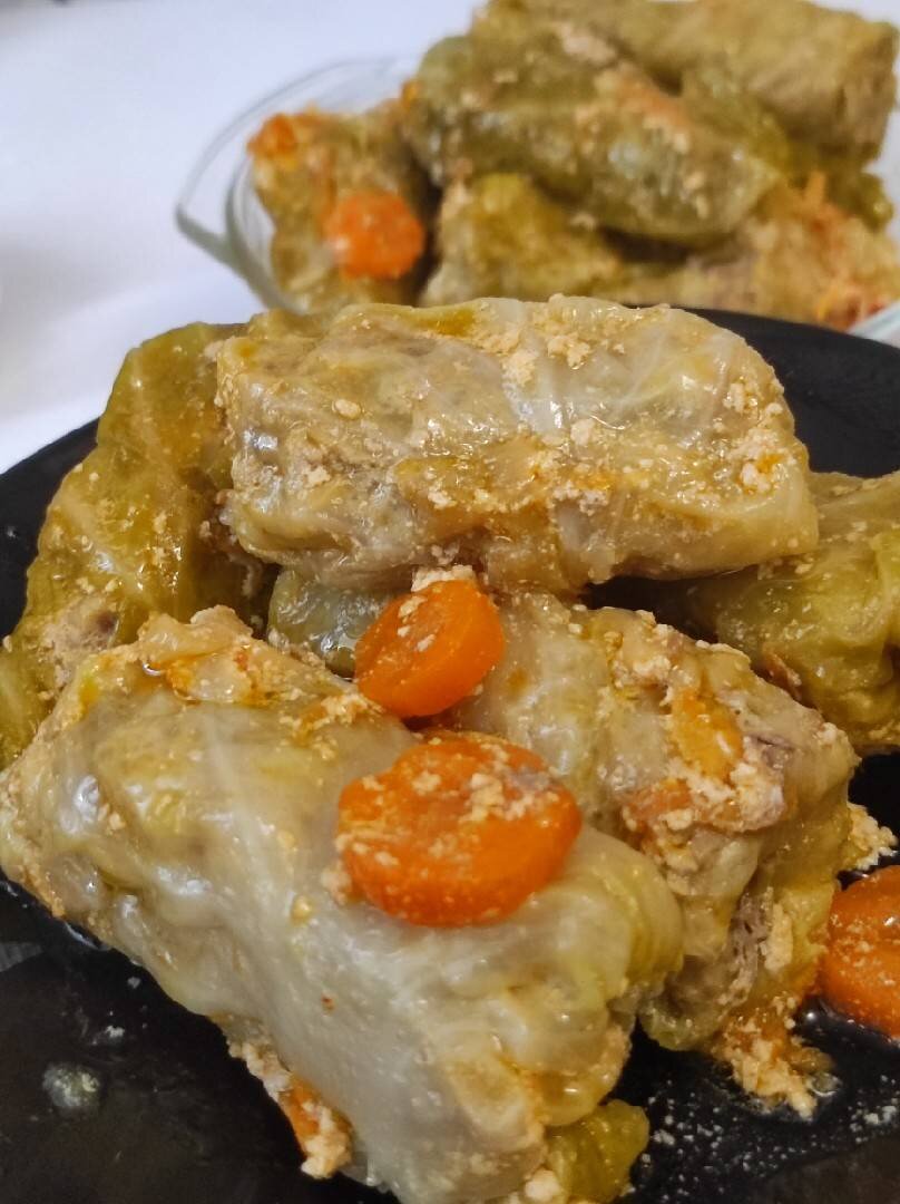 На мой взгляд самые вкусные и нежные голубцы получаются из листочков молодой, весенней капусты!!! Попробуйте обязательно!! ВКУСНО. ПРОСТО. ЛЕГКО ❤️ #непп #меню Ингредиенты: капусты (700 г), мясного фарша, риса, средняя морковь, лук, соль, перец, Для соуса, сливок 10%, томатной пасты, лук, морковь, соль, перец Способ приготовления: Рис отварить до полуготовности, натертую морковь обжарить на растительном масле Капусту я готовлю в микроволновке: для этого в капусте вырезать кочерышку, поместить в ёмкость, налить 200 мл воды и поставить на 4-5 мин в микроволновку Листья очень хорошо отделяются, если у вас большой кочан, то можно капусту в несколько приемов отправлять в микроволновку (по центре кочан придерживать вилкой) В мясной фарш добавить отваренный рис, поджаренную морковь, нарезанный (не жаренный) лук, соль, перец и хорошо вымешать В подготовленные листики (обязательно срезать утолщение) завернуть начинку, форму голубцов выбирайте сами Для соуса нам нужно обжарить лук, морковь, доба