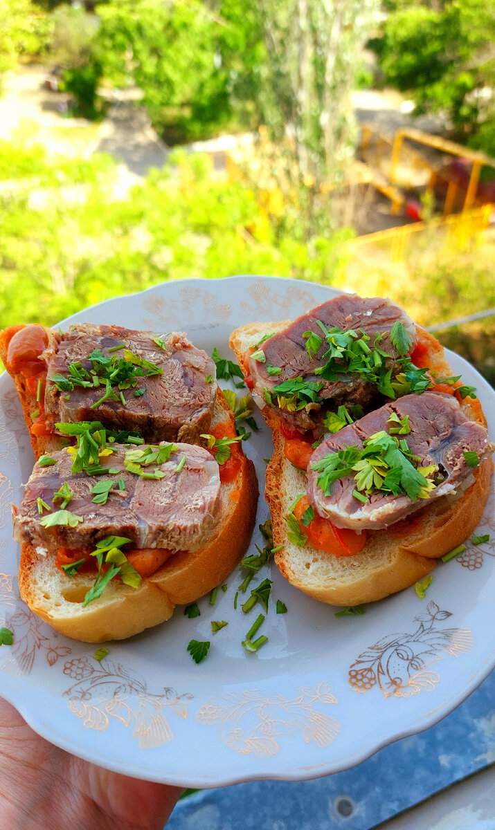 Для бутербродов я использовала отварную говядину. Отруб - голяшка. Написала про мясо здесь - Такая говядина отдалённо напоминает язык, очень вкусная, плотная, насыщенная. Взяла свежий батон, как облако пушистый и душистый, даже не стала с ним ничего делать, просто нарезала на кусочки. На батончик выложила немного фасоли с овощами, в соусе, слегка раздавила фасоль вилкой, для удобства. Немного мелко посеченного репчатого лука, для остроты. А сверху - говядина и зелень. Можно ещё горчички) #бутерброды с фасолью #бутерброды с говядиной #бутерброды рецепт #как приготовить бутерброд #кулинарные советы #бутерброды с мясом