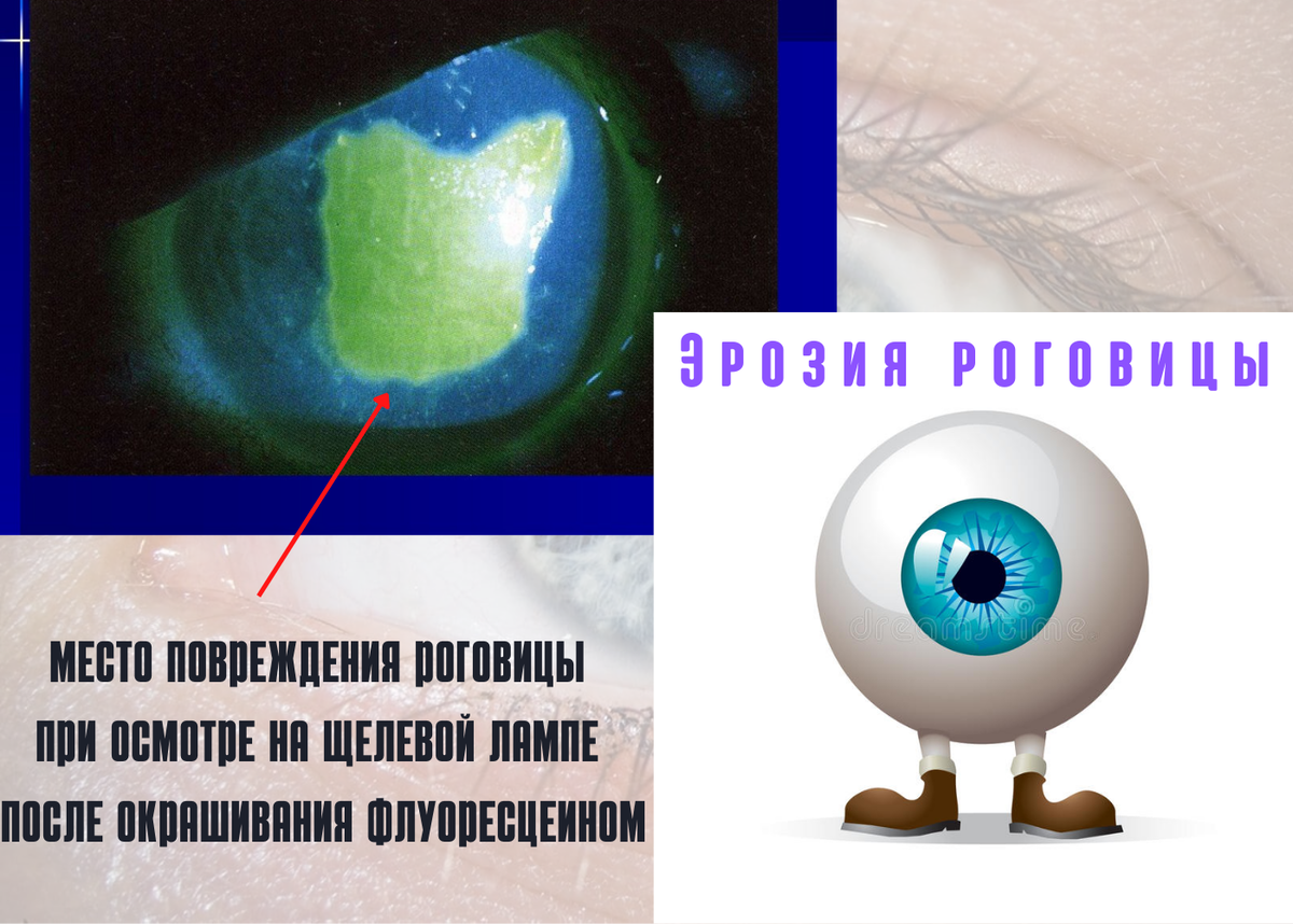 Давайте с вами разберемся что же это такое Эрозия роговицы – это поражение роговицы, которое сопровождается потерей и повреждением эпителиального слоя. Чаще всего эрозия роговицы возникает при механических повреждениях, химических и лучевых воздействиях. При эрозии роговицы может наблюдаться отторжение или отслаивание эпителия на ограниченном участке или на всей поверхности роговицы. Реже встречается самопроизвольное отторжение эпителия, которое называется РЕЦИДИВИРУЮЩЕЙ ЭРОЗИЕЙ. Эрозия роговицы может также возникать вследствие - Нарушения правил ношения контактных линз -Попадание в глаз инородных предметов К основным симптомам эрозии роговицы относится: -Сильную боль - Слезотечение -Выраженная светобоязнь -Покраснение глаза -Ощущение в глазу инородного тела - Снижение остроты зрение -Боль в поврежденном глазе -Затуманивание зрения Рецидивирующая эрозия роговицы возникает, как правило, после травмы поверхностного слоя роговицы, то есть эрозии