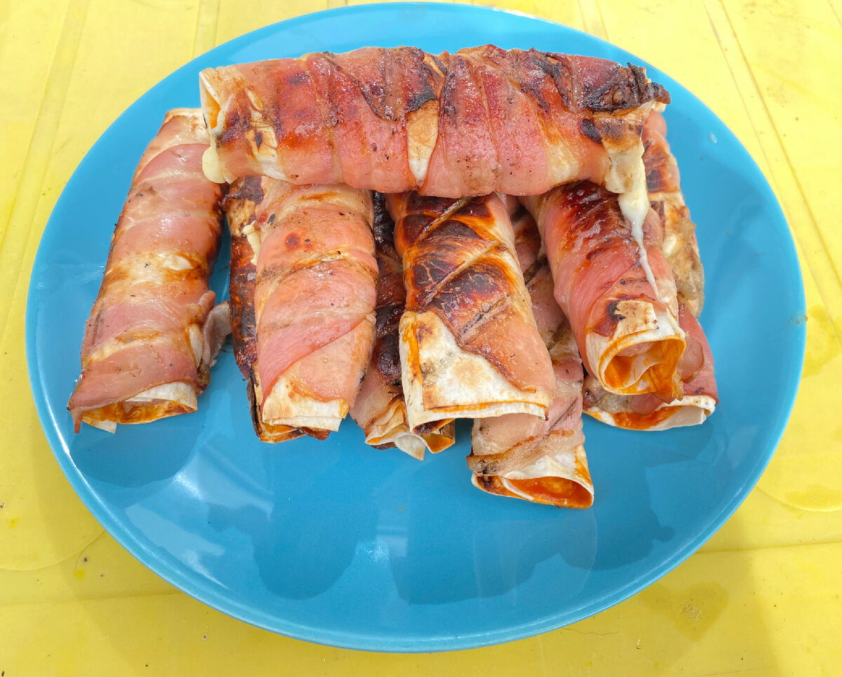 Когда живешь за городом, шашлык это обычное и уже приевшееся блюдо. Сегодня мы внесли разнообразие в наш рацион) Что нам понадобится: Для соуса: Начнем с сосисок. Все очень просто. Сосиски нужно раздеть Лаваш нарезаем на листья так, чтобы можно было обернуть пару раз Приготовим соус. Майонез, кетчуп и горчицу перемешиваем в мисочке Далее берём нарезаный лаваш, намазываем соус так, чтоб не было свободного места. На сосиски наматываем сыр и заворачиваем в лаваш После того, как сосиску замотали в лаваш, это все дело мы покрываем беконом Так проделываем со всеми сосисками Когда угли прогрелись, кладём все наши сосиски на решетку и жарим Так как практически все наши ингредиенты готовы, нам нужно совсем немного времени, чтобы они стали вкуснятиной Это блюдо заходит как взрослым, так и детям, особенно детям) Приятного аппетита! :)
