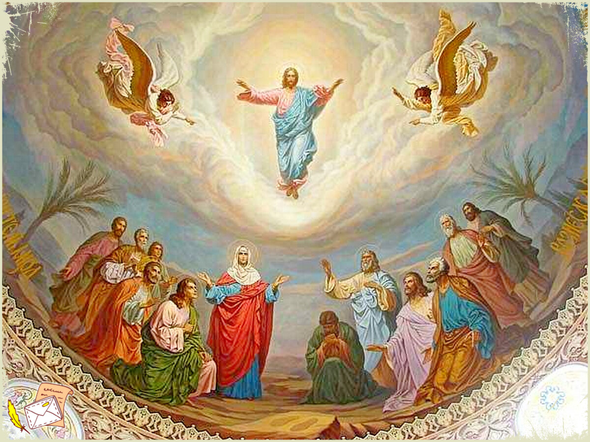 Ну вот и Вознесение Господне! Прошло 40 дней после Пасхи Христовой. Воскресший Христос являлся ученикам в течении этих 40 дней и рассказывал им о Царствии Божьем. В последний день своего пребывания на земле, Иисус Христос собрал их на горе Елеон, дал последние наставления, подняв руки благословил и стал подниматься на небо, возносясь и отдаляясь от них ввысь, пока облако не скрыло Его. Апостолы и Богородица ещё долго стояли и смотрели в небо. Можно себе представить как не хотелось им покидать место, где последний раз стояли ноги Спасителя, где они получили последнее благословение и услышали прощальные слова. Неизвестно сколько бы они ещё стояли.. Но явились им два сияющих ангела и утешая их сказали, что Иисус Христос таким образом вознесшийся, так же и вернётся. Это были слова о Втором пришествии. Вознесение Господне- это праздник завершения Спасителем своего земного служения, это возвращение Божественного Сына к своему Божественному бытию. Это и раскрытие перед человечеством необозрим