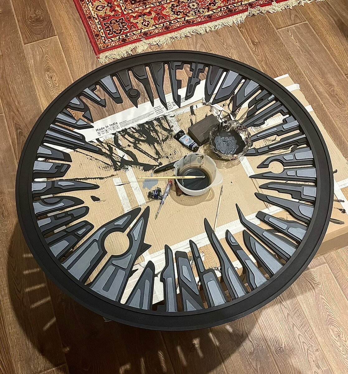 🔴Продолжаем работу над декором WheelCity! Забросил Дзен, возвращаемся в дело. Доработанная версия настенного декора с измененным рисунком векторов в стадии росписи. Первые тестовые версии ушли на хранение в галерею, этот экземпляр будет украшать спальню.