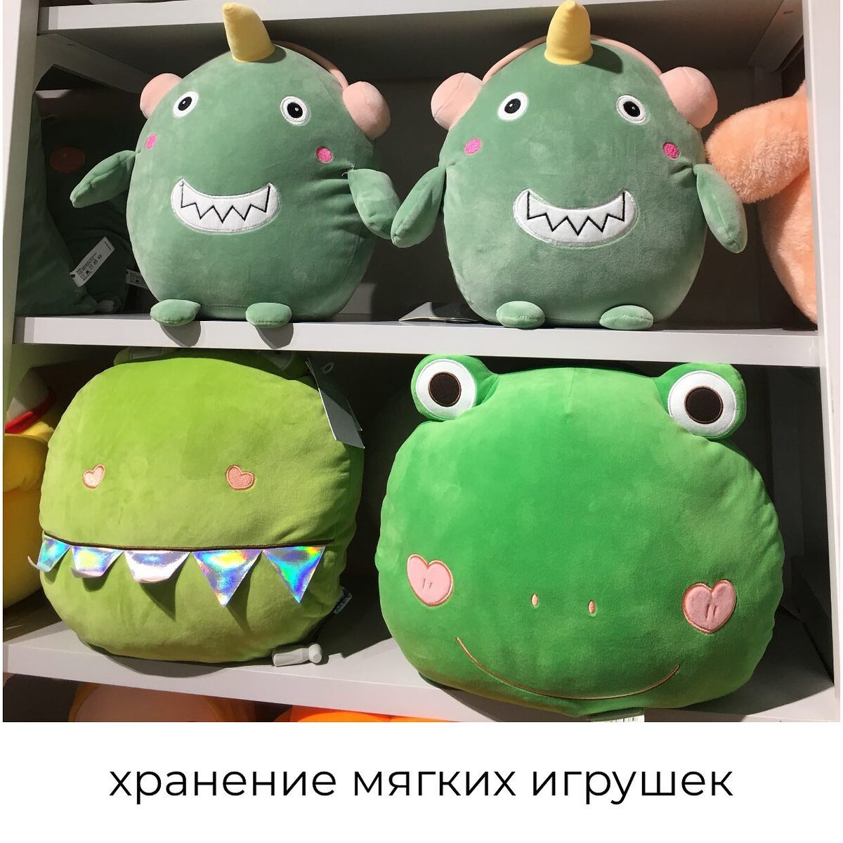 Дети их любят - кто-то спит с любимым слоном, кто-то носит с собой плюшевого друга и не может расстаться. У нас дома не так много мягких игрушек (может 10 шт), они «живут» в кровати у Паши (ему 8 лет) и он перед сном всех обязательно пересчитывает 😂 Мы стараемся не покупать мягкие игрушки и бабушкам сказали не дарить! Ох уж эти бабушки 🙈 А дети просят купить и даже Кристина недавно заказала динозавра в ИКЕА, а ей почти 17 лет... Мягкие игрушки - это пылесборник, нужно чаще их стирать или сдавать в химчистку. Знаю, что некоторые детские просто тонут в мягких игрушек, даже когда дети выросли. 👉 Если не готовы расстаться с мягкими игрушками, то вот мои любимые варианты: ⠀ 1️⃣. Пуфик-мешок для игрушек - практичная вещь, можно сидеть как на обычном пуфике 👍 Купить можно на Али-экспресс. ⠀ 2️⃣. Мой любимый органайзер (кармашки для обуви) на дверь. МЕГА вещь, не только для мягких игрушек, но и для кукл, трансформеров, машинок. ⠀ 3️⃣. Подвесные полочки, можно сделать самостоятельно - пл