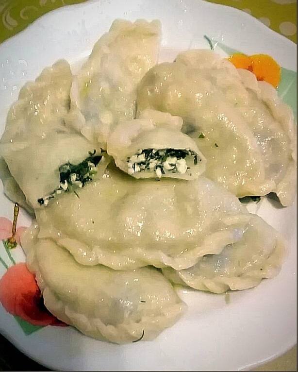 #готовимвместе Люблю вареники, особенно с картошкой. А вот с творогом как-то не приходилось делать. Ингредиенты: молока, воды, просеянной муки, яйцо, растительного масла, Начинка:, Творог, зелень, соль, лавровый лист Способ приготовления: Тесто: 1\2 кружки молока, туда разбить яйцо, соль -размешать и долить воды. Высыпать в жидкость 3 таких же кружки просеянной муки, добавить 1 ч.л растит.масла, а можно и столовую ложку. Замесить тесто сначала ложкой или лопаточкой деревянной, затем руками. Завернуть в целлофан и оставить на полчаса. Тесто мягкое, эластичное. Например пачку творога смешать с зеленью укропа, петрушки. Посолить по вкусу. Зелень у меня замороженная, творог зерненый. Из зелени можно шпинат, укроп, петрушку, сныть. Сделать небольшую колбаску из теста, нарезать на небольшие одинаковые части. Каждую раскатать в кружок толщиной 1-2 мм. Положить ложечку десертную например (зависит от величины кружка) начинки и соединить края вареника. В это время воду довести до кипения, посоли