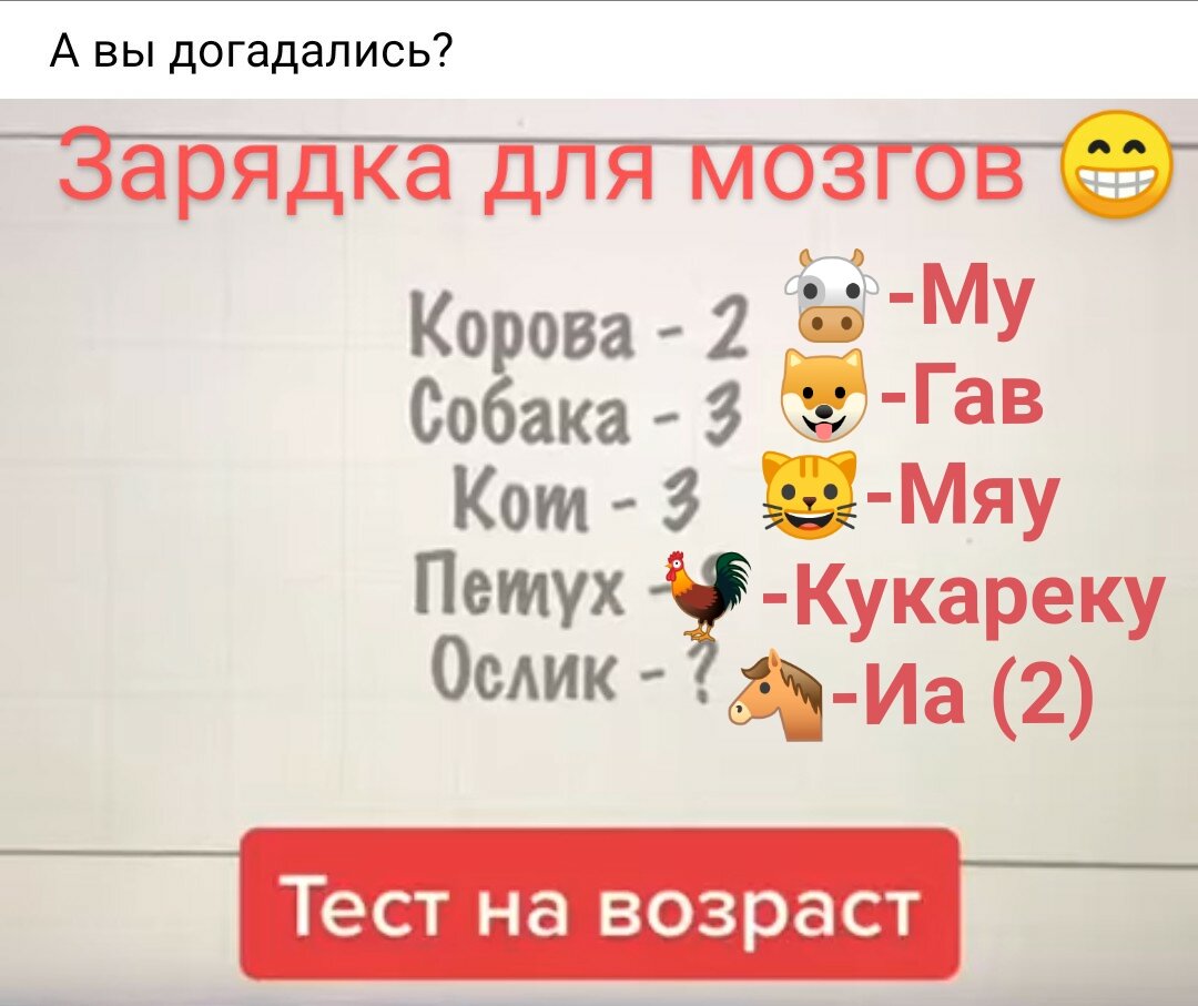 Ответ: 2 и это количество букв того, как "говорят" животные (слова моего сына)😁