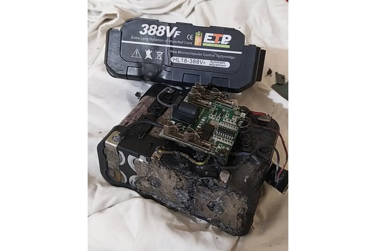 Впервые сталкиваюсь со случаем, когда литиевый аккумулятор загорелся "сам по себе" не во время зарядки. И это, конечно, пугает. Современные литиевые аккумуляторы имеют очень высокую концентрацию энергии. Если литий-ионный или литий-полимерный аккумулятор начинает гореть, потушить его практически невозможно и он прожигает всё вокруг (включая металл). К счастью, горят аккумуляторы довольно редко и происходит это обычно в двух случаях: - при сильном физическом повреждении (обычно аккумулятор не загорается при деформации или ударе, а загорается лишь при внутреннем повреждении, например если забить в него гвоздь и только в том случае, если аккумулятор заряжен); - при неправильной зарядке и сильном перегреве (от возгорания в этом случае обычно спасает внутренняя термозащита аккумуляторов, размыкающая цепь при перегреве или повышении давления внутри аккумулятора). Я "собираю" случаи возгорания аккумуляторов и техники, оснащенной ими (электросамокатов, электровелосипедов, инструментов и пр.),