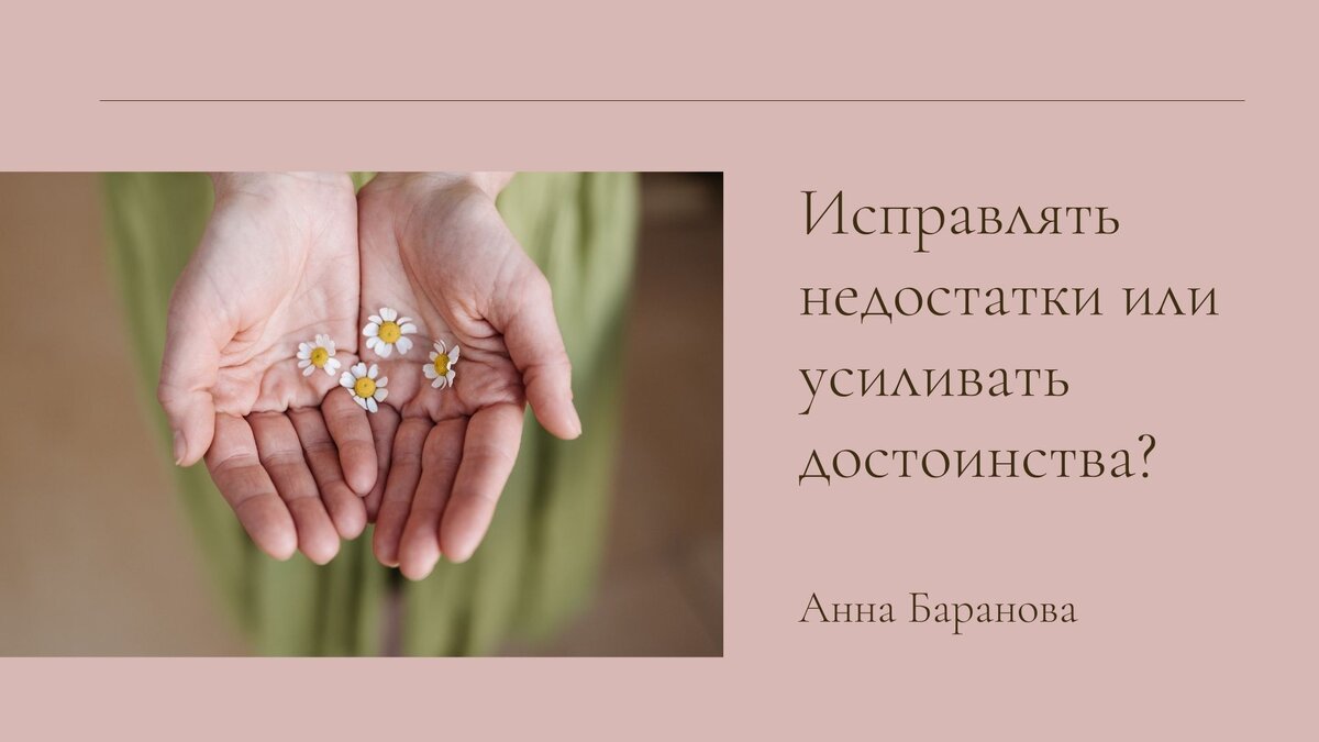 Всем доброго времени! Приветствую вас на своем канале! Это пространство я делаю для вас, чтобы вы могли высказать свое мнение, поделиться своими историями и получить обратную связь. Подписывайтесь, чтобы не пропустить новые материалы. А сегодня я хочу поговорить на тему достоинств и недостатков. Известно, что нет идеальных людей. Все мы живые, уникальные, со своими достоинствами и недостатками, сильными сторонами и слабостями, тенью и персоной. Что я чаще всего вижу? Люди замечают свои недостатки, кто-то чуть ли не культивирует их в себе пристальным вниманием и осуждением. И крайне редко я слышу от людей, что они отмечают свои сильные стороны и делают на них упор. По моим наблюдениям, человек взращивает в себе то, на что больше всего обращает внимание. Внимание - это энергетический луч, который подпитывает любую сферу или вопрос. Например, если у нас есть проблема в какой-то области, то стоит уделить ей достаточно внимания, как происходят перемены. Не было друзей - стали ходить на