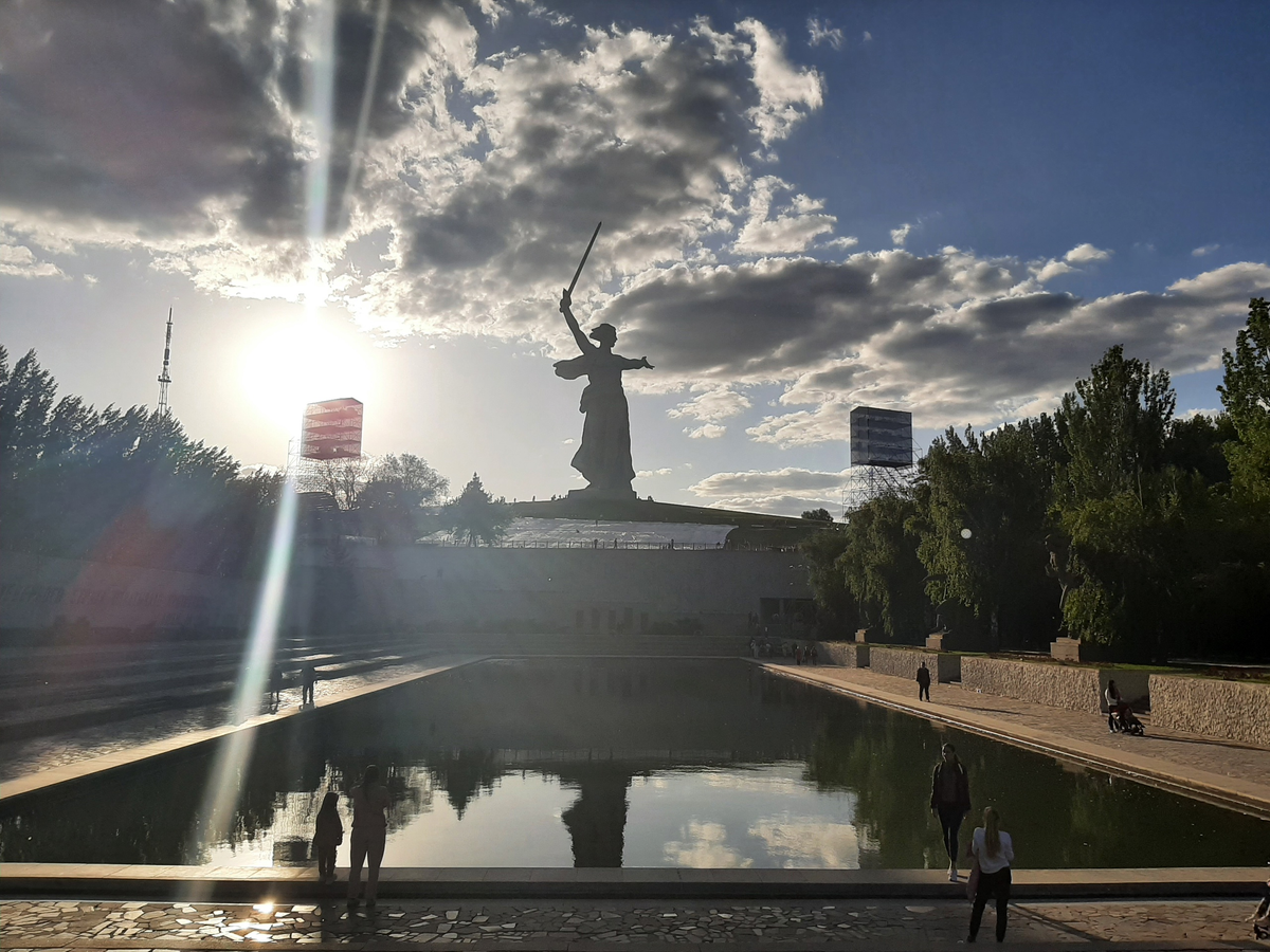 От Астрахани до Волгограда 400 км и потом по Волгограду до Мамаева кургана еще 40 км. Представляете?! Целых 40 км по городу! Просто Волгоград очень сильно вытянут вдоль Волги - на целых 60 км!!! Ужас, какой он длинный!