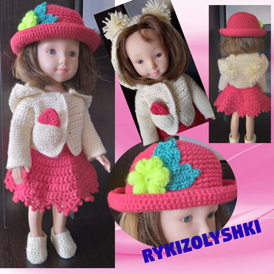 Кукла крупнее барби и вязать на неё одно удовольствие. Просто , но более фактурно. Крючок №2. Нитки общедоступные. Столбики без накида и с одним накидом. Кофточка сверху на кнопке. Резинка юбочки выполнена спицами- 1.лиц. , 1 изн.